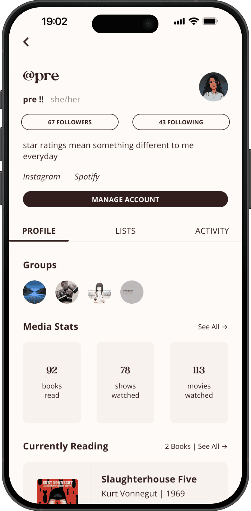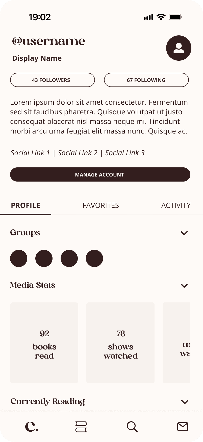 I understand why many existing media-tracking apps are structured the way they are! Balancing so many media formats and social features can be overwhelming for users and designers alike; setting goals early and checking alignment throughout was essential in keeping the project manageable.