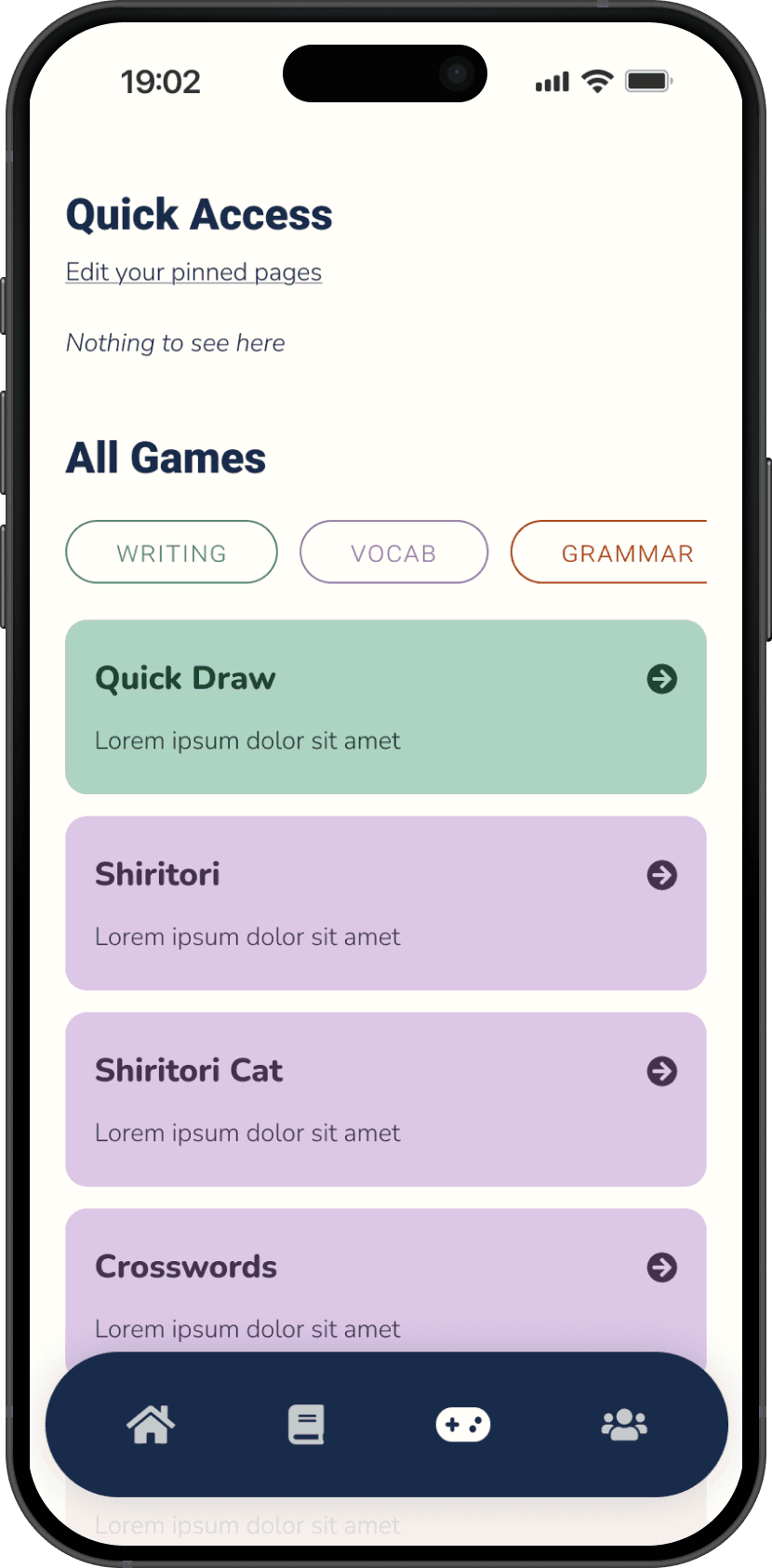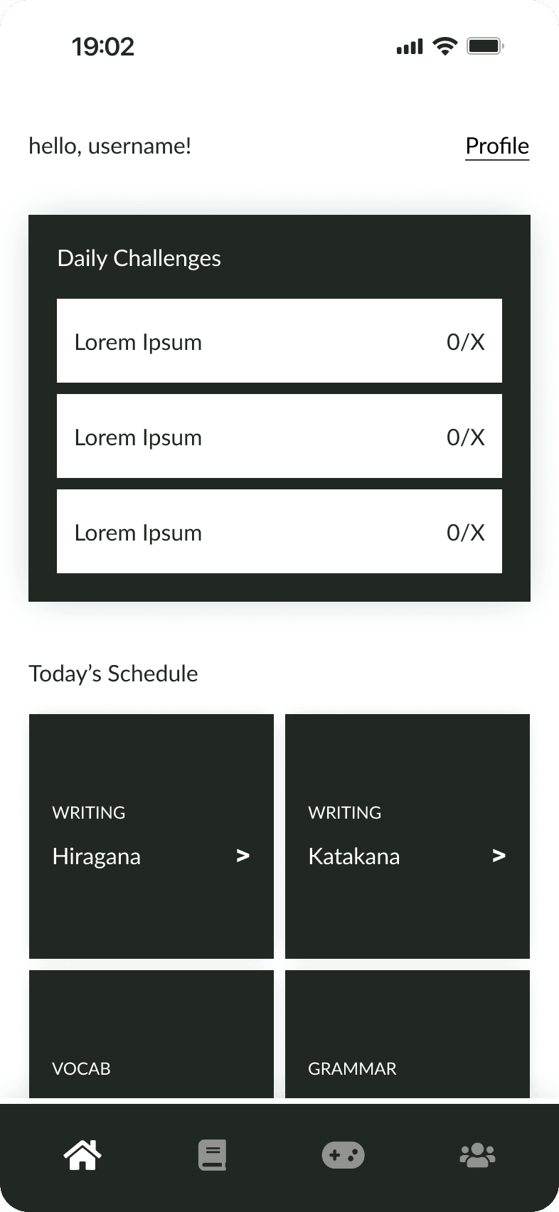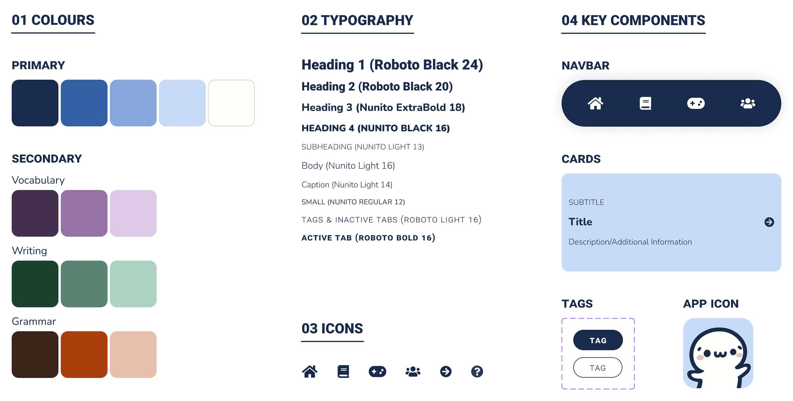 The copy for each card was taken directly from the existing application. The only amendment included the addition of brief explainers for Japanese-specific content, such as “Hiragana is a Japanese writing script.”