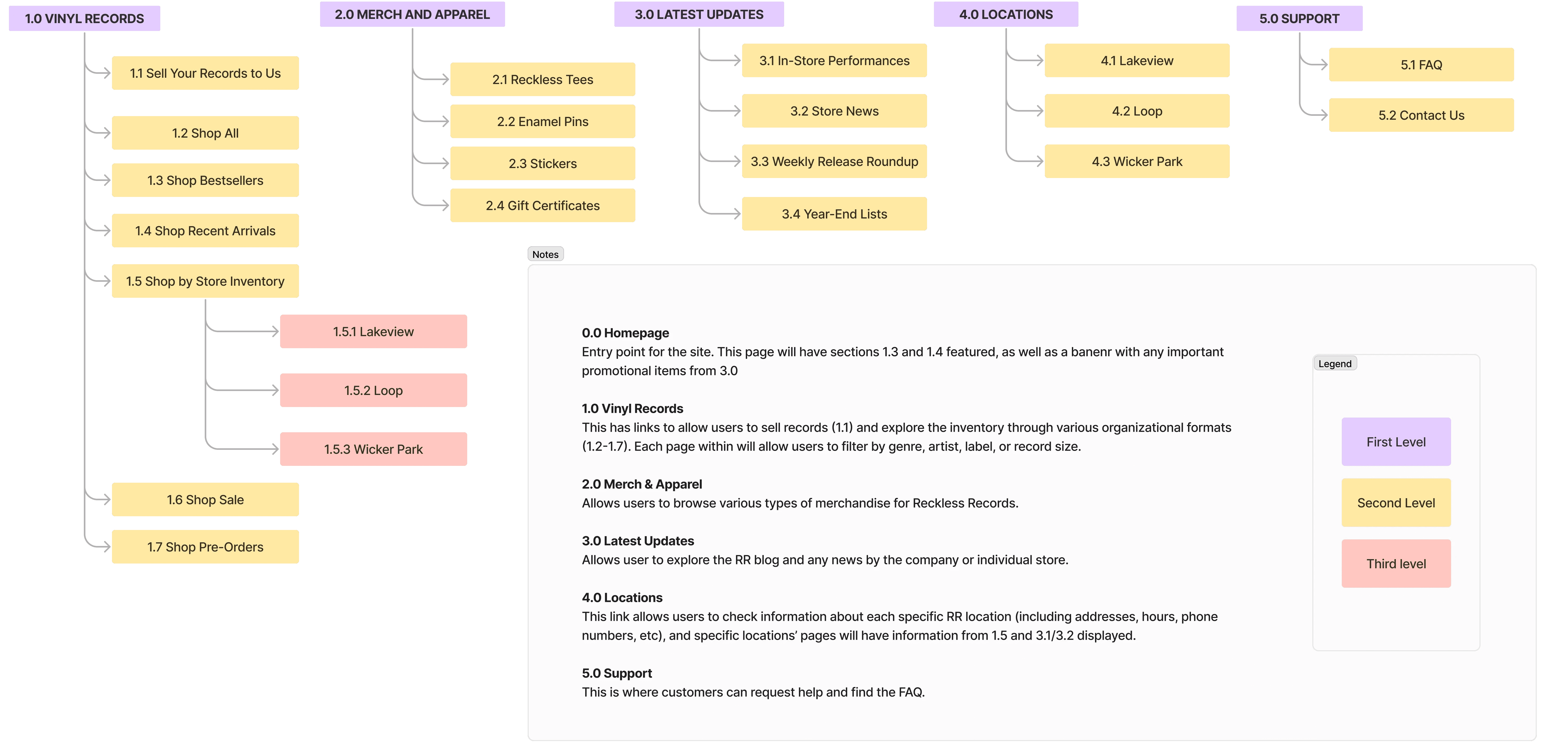 This included the removal of several categories under 1.0, which I determined were better suited as sorting or filter options, in addition to the renaming of categories 2.0, 3.0, and 5.0.